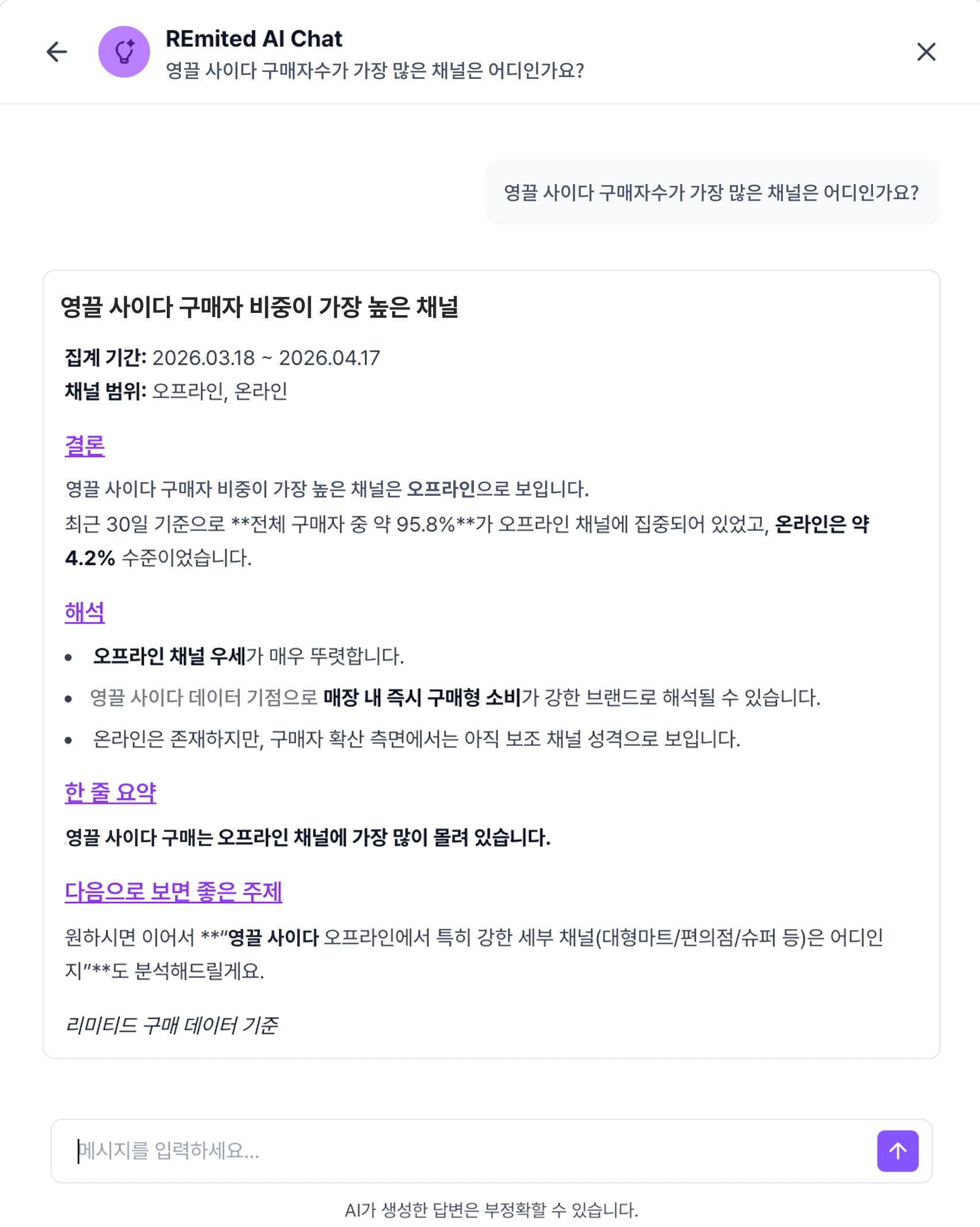 영수증 기반으로 실제 소비자의 구매 행동 인사이트를 제공합니다.