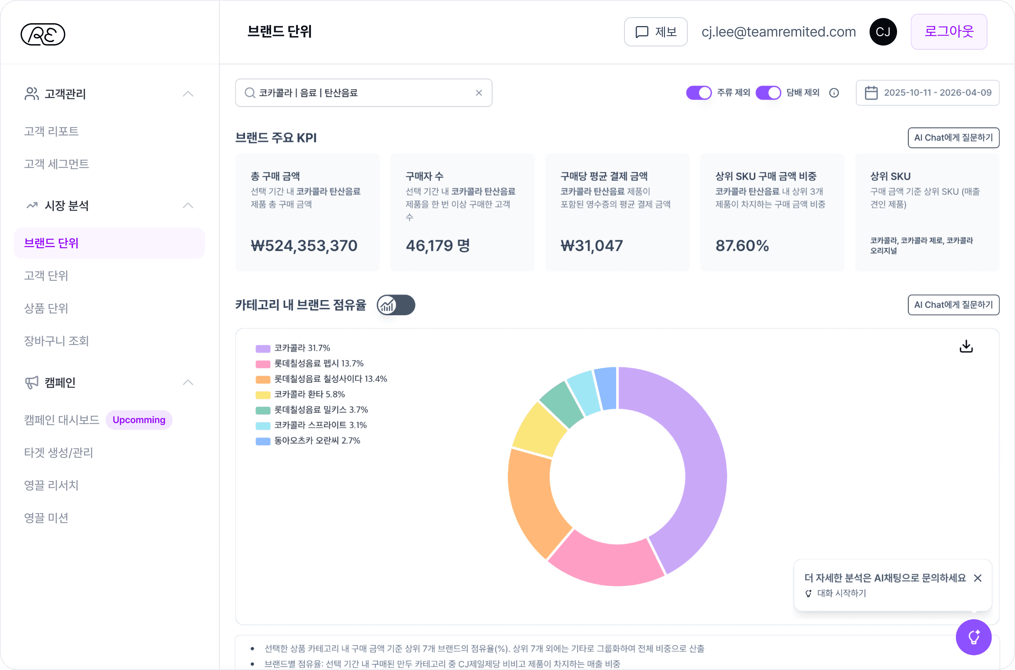 우리 브랜드 고객을 숫자로 깊이 이해합니다