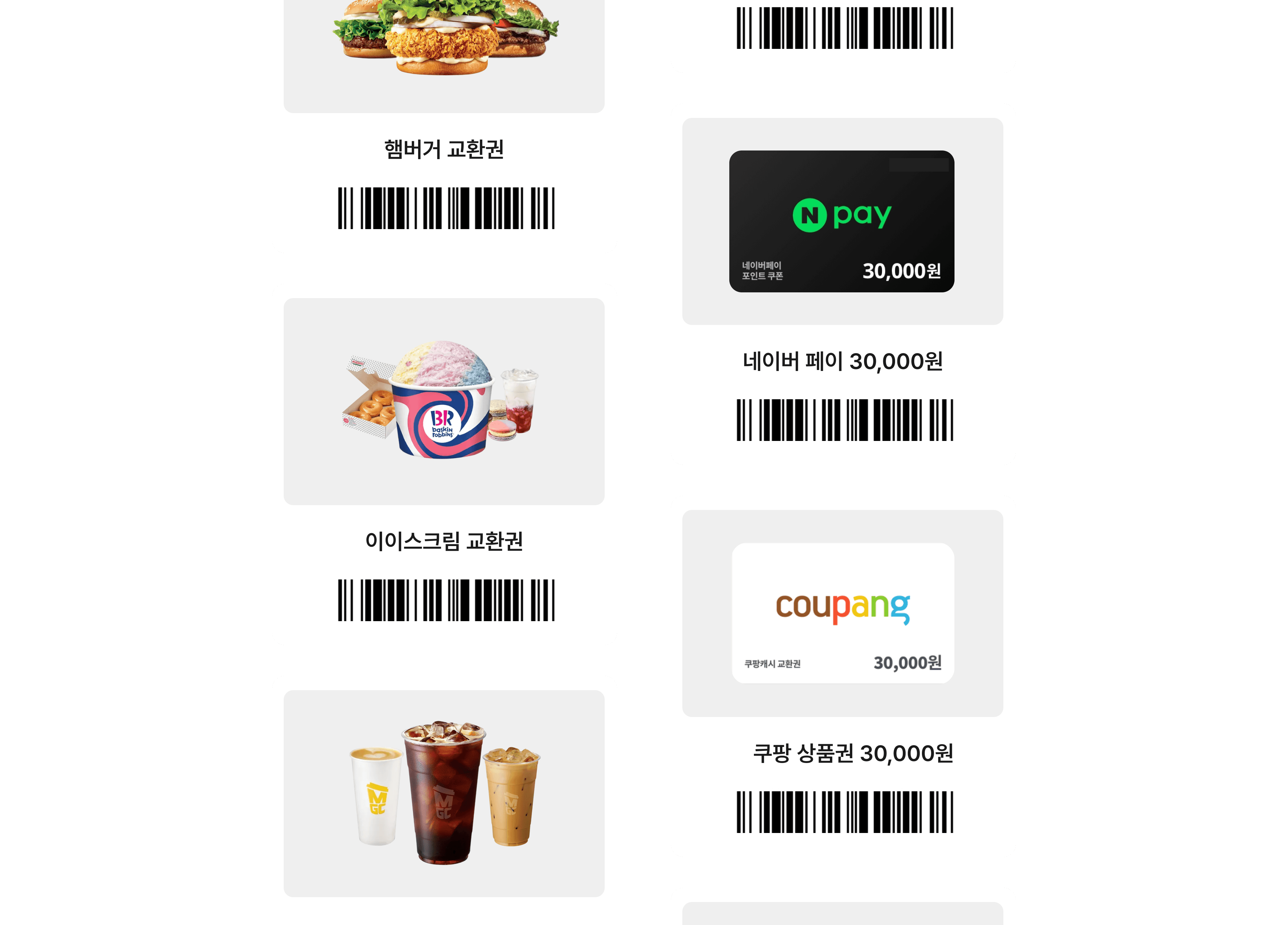 메가 커피 또는 스타벅스 커피 교환권