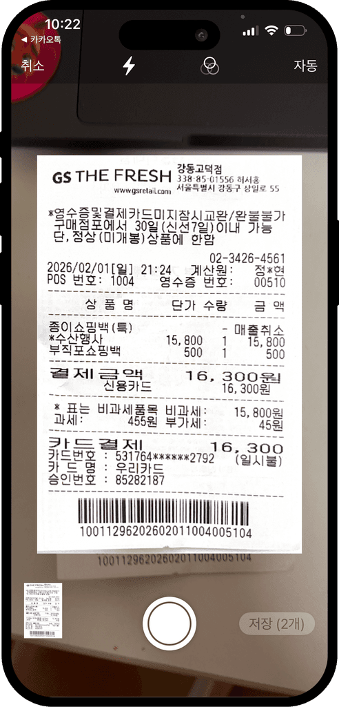 간단한 촬영으로 영수증을 업로드